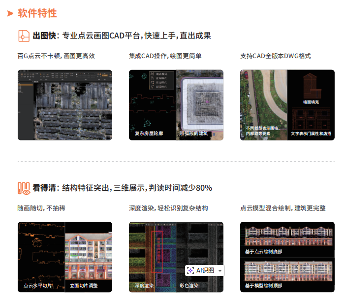 CoProcess 2025是华测导航自研的全新一代点云数据处理软件,除了延续上一代海量数据流畅浏览、点云智能提取算法丰富的特性以外,2025大幅提升了CAD绘图能力,可以高效支撑用户通过点云和模型绘制建筑室内外平立面图。